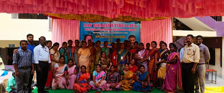 Today, Nav Bharath Vidyalaya stands as a center of excellence. We are equipped with state-of-the-art science laboratories, advanced computer labs with multimedia and internet access, and a well-stocked library that offers the latest editions of reference books across various subjects, It is with great pride that I say , through the hard work of our students, the dedication of our teachers, and the unwavering support of our parents , we have consistently achieved CENTUM RESULTS in both the Matriculation and Higher Secondary Examinations.